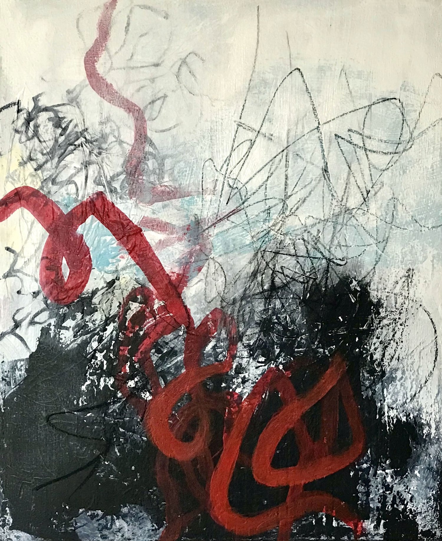 “Since childhood, I have painted in various forms, acrylic, drawing, realistic, esoteric and now abstract. I have painted digitally but started to miss working with different structures and really get to know the material I work with. Therefore, I have started my journey towards abstract painting with materials such as putty, clay and acrylic.”