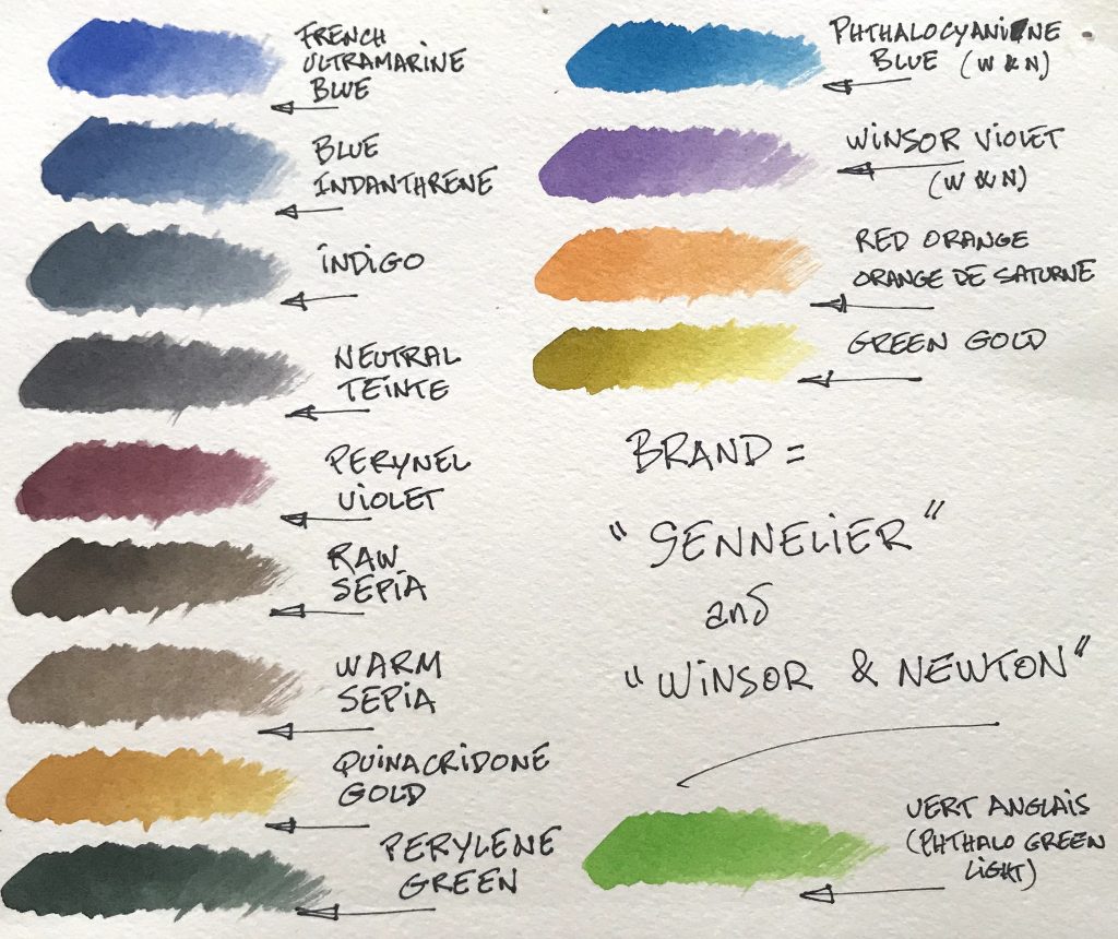 Thierry, – “My favorite brands are: Sennelier and Winsor & Newton. The color palette would be this one (see image).”