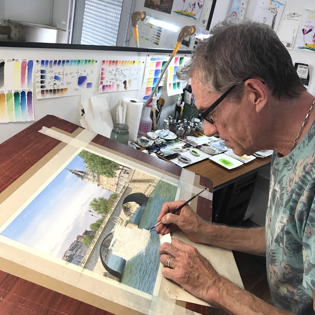 Thierry, – “I worked as an artistic director in many large advertising agencies in Paris, but it was a very stressful job, I wanted to move on. Framer friends of mine, who knew my watercolor work, offered to exhibit my work in their shop, and it turned out being a real success – the 30 exhibited works were all sold within 2 weeks. This was the confirmation for me that I think I needed. Telling me I could embark on an artistic career. During an exhibition of my work in Montmartre I was discovered by a great gallery owner in Japan, who exhibited me and the works of mine – for several years in a row. I was invited to Japan for each of these exhibitions. But again, I decided to stop these too stressful collaborations – in my opinion, because the obligation to provide a large number of paintings for these exhibitions did not allow me to work at my own pace, and to spend enough time on each watercolor. Now having stopped with that kind of exhibitions I now work for private collectors. Much less stressful for me, and I can spend a lot more time on each work.”