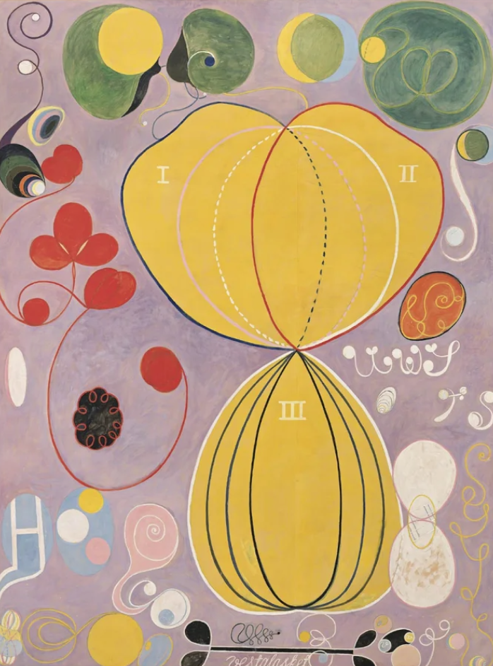 Hilma af Klint’s journey toward abstraction was deeply intertwined with her spiritual beliefs. In the late 19th century, af Klint became deeply involved with spiritualism, theosophy, and later, anthroposophy. These esoteric movements, which sought to reconcile science, religion, and mysticism, had a profound impact on af Klint and her artistic practice.