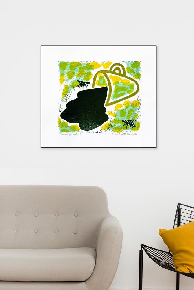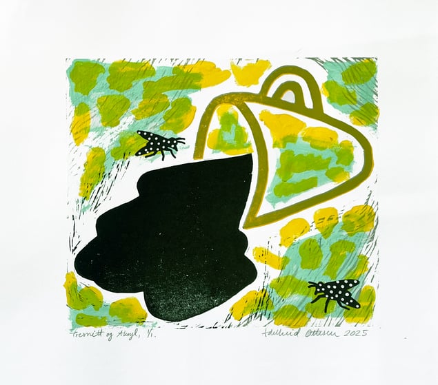 Four different, but a bit similar, messy summers. Woodcut and Acrylic on paper.