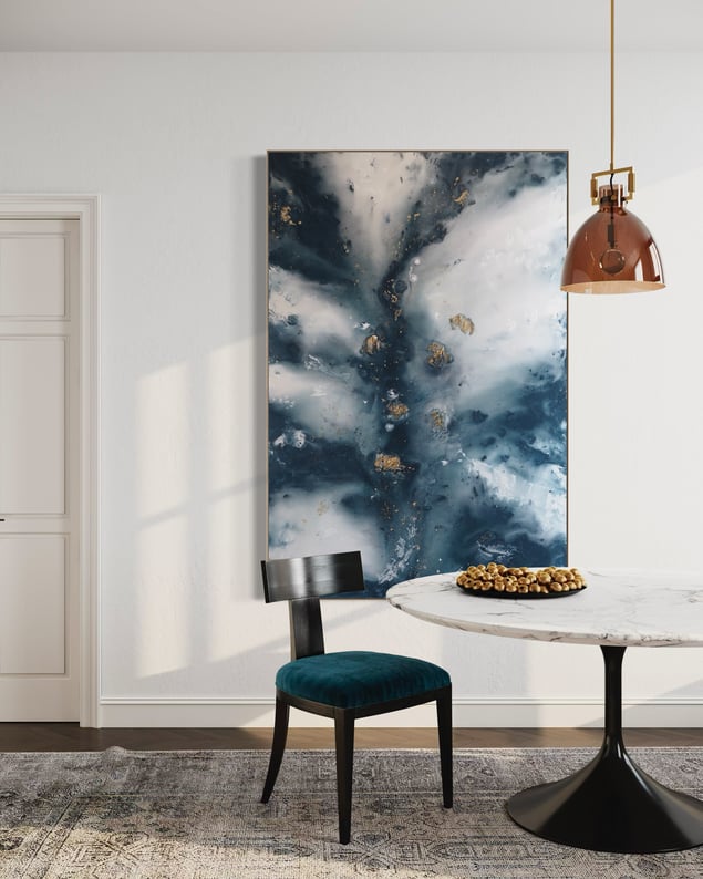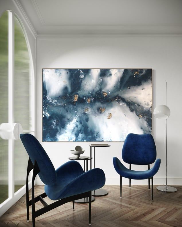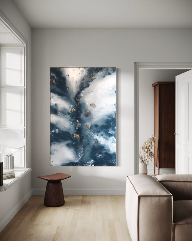 Fjord, (2025) Original painting on 3 cm deep canvas, framed in a floating frame Size: 100 × 150 cm This artwork can be displayed either vertically or horizontally, depending on your preference. It will be signed by the artist upon sale. All original paintings are unique and signed with the artist’s name, year, and personal signature. A certificate of authenticity is included.