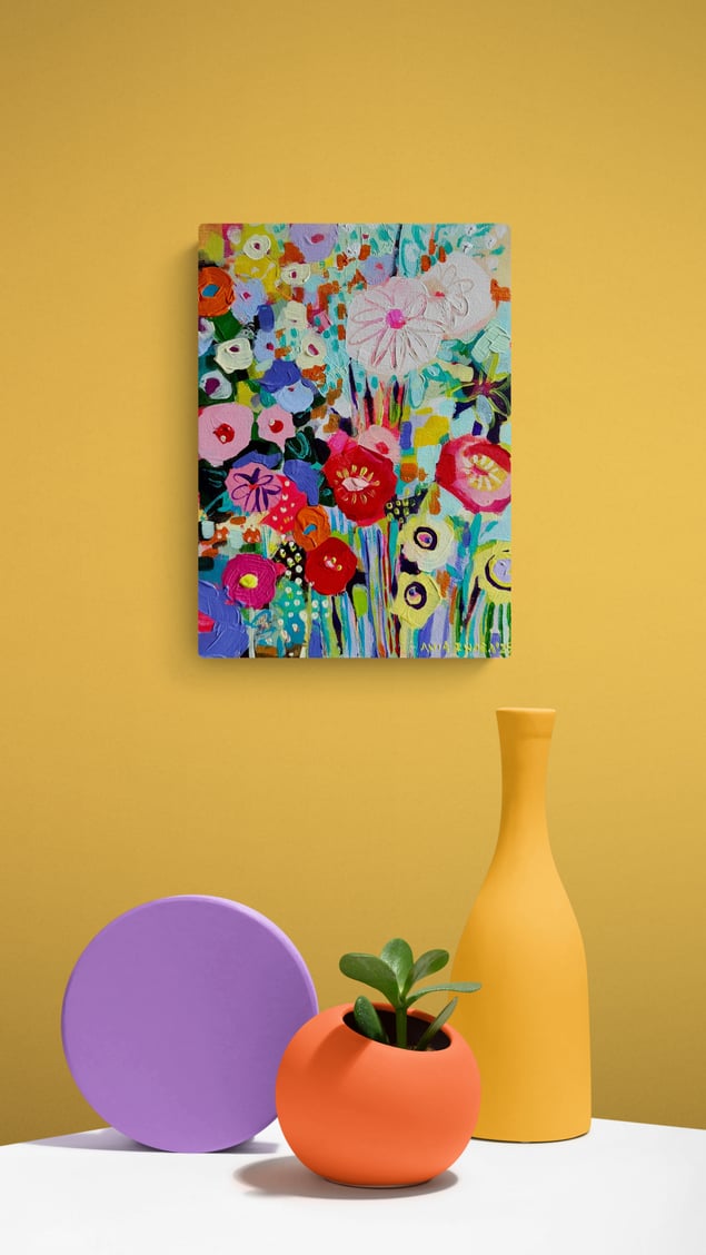It'a s tiny treasure- blooming with meadow energy and soft peace. It's vibrant, calming and filled with joy. Perfect for adding a gentle burst of color and story to your space.