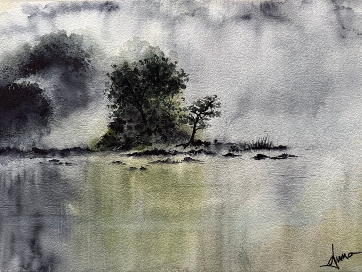 Hi! Pleased to meet you. I am an artist who has recently emerged from a two-decade hiatus in my creative journey. Life, family and way to much work did not leave energy to create. Art has always been an integral part of my life, starting from early experiences with drawing, painting, and sculpture. I have always enjoyed creating miniature environments, an inclination that first manifested itself during my childhood when I meticulously designed elaborate "castles" for my Barbie dolls. I never actually played with the dolls themselves; they just had a great house made with the books in my room for walls. During high school years I was an art major and worked as a substitute art teacher. Teaching was not for me. At least not in my 20s. My fascination with designing spaces evolved over the years, transitioning from Barbie castles to constructing miniature room boxes that could be hung on walls to pursuing a career in interior design. Today, I have my own Interior design - and event decor company. Events are rooms too and I love creating experiences for people to enjoy. At 53 years young I am now starting a new chapter artistically. Finally, I am back at painting. Funnily enough it was when I got a room to myself in our home that the passion came back. There is that room again. Watercolour is my now but I aim to explore other techniques going forward. I am truly exited to embark on this second chance to art.