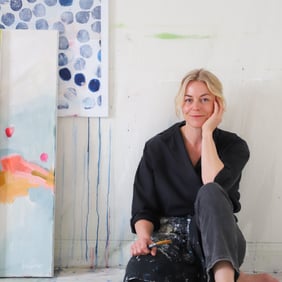 As a former marketeer turned self-taught artist, I create vibrant, joyful abstract paintings in my Stockholm studio. Often large scale and full of bold colours my artworks bring positive energy and playfulness to any contemporary home.