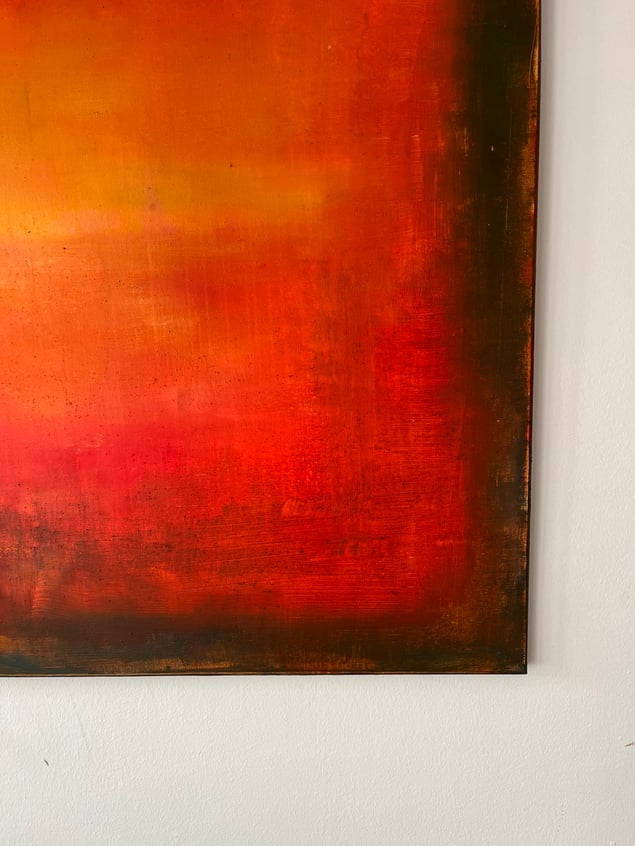 Acrylic on canvas, depth 1,9 cm. A warm, colorful piece that recalls the glow of summer days.