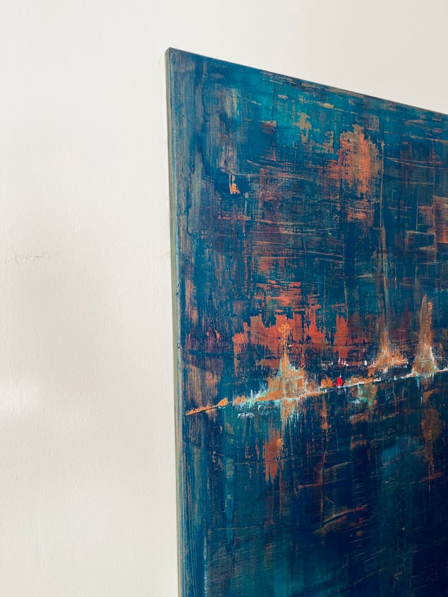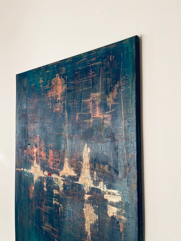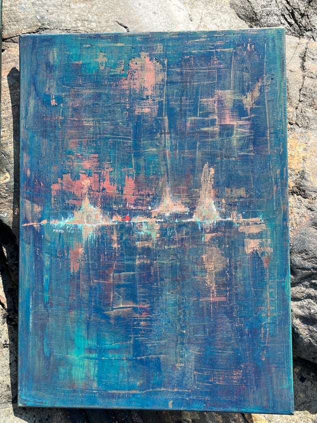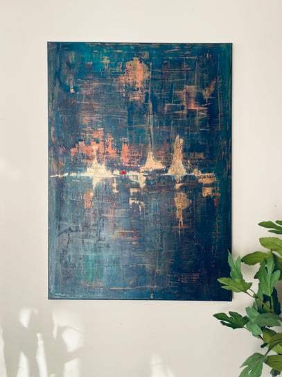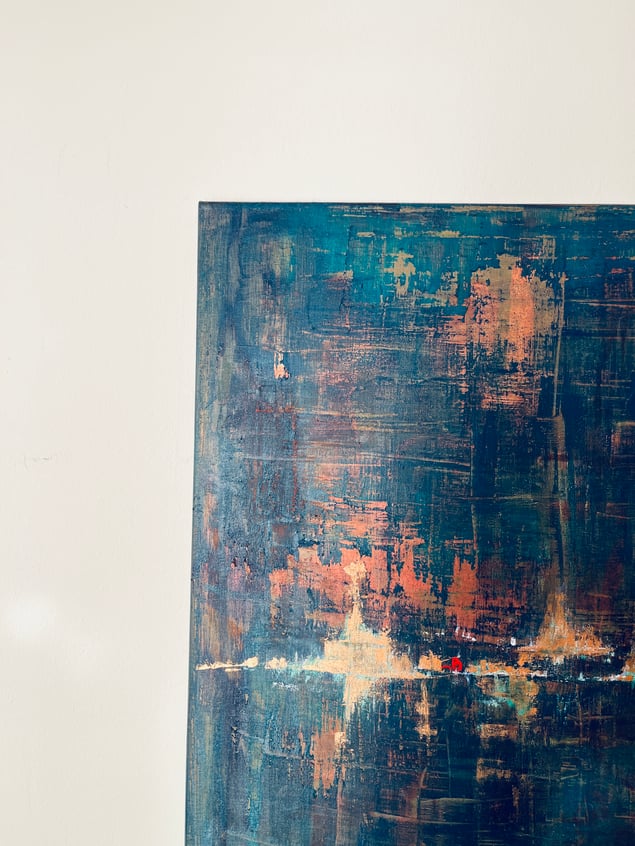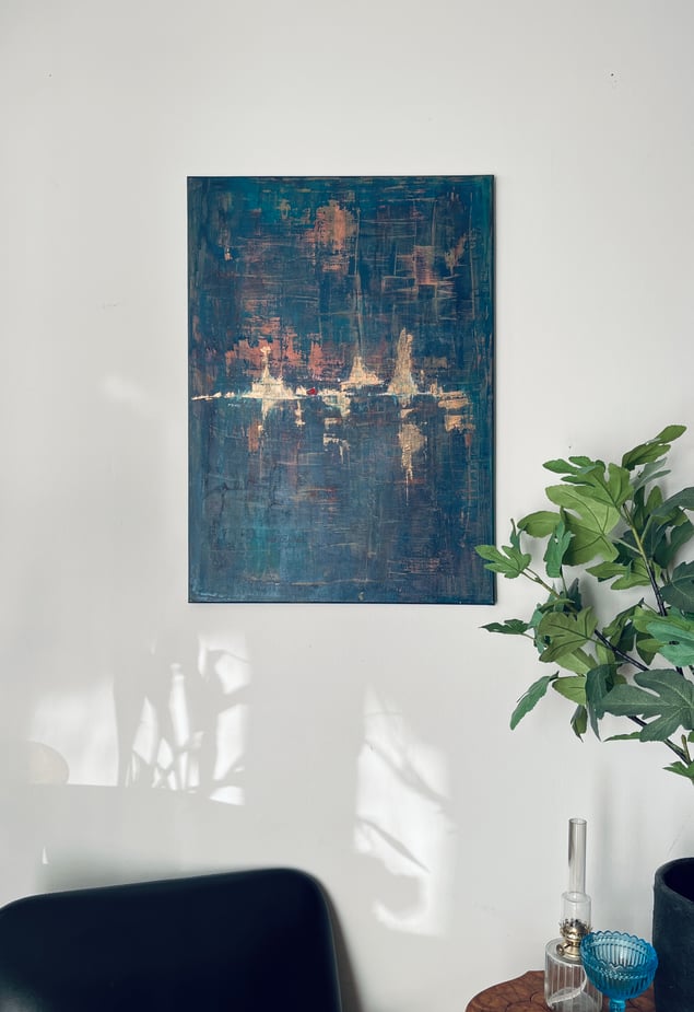 I’m a self-taught Swedish artist based in Stockholm. I have a background in graphic design and photography which has given me a strong foundation in composition and visual storytelling and has taught me to notice the small things — lines, textures, contrasts. I’m drawn to abstract art and often begin without a plan—letting colors, texture, and emotion lead the way. I tend to gravitate toward darker tones, often incorporating coffee or sand to add depth and texture. I like when things feel a bit “gritty”—it shouldn’t be too perfect. For me, creating art is a way to find presence and stillness. I don’t strive for perfection, quite the opposite. I don’t want to overthink, I work fast and simply follow my intuition and emotions.