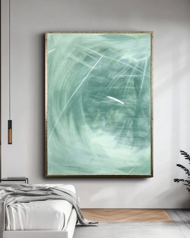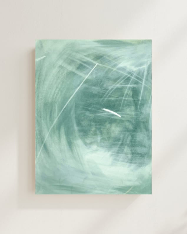 Becoming captures the quiet transformation that happens beneath the surface. The soft, mist-like layers move between hesitation and clarity the emotional steps we pass through when we choose something new. From doubt, to fear, to the moment we wonder if we made the wrong choice until the shift comes, and we realize our intuition was right all along. This painting holds that inner journey: the disorientation, the introspection, the breaking open, and finally the calm that follows when we land exactly where we’re meant to be. A reminder that becoming yourself is rarely linear but always worth it.