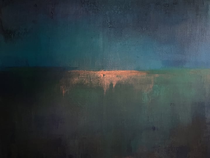 Originalmålning av konstnär Frida Johansson. Målningarna är målade på bomullscanvas med akrylfärg. "Sval Bris Under Eken" 60 x 80 cm, akryl på canvas. Från 2023.