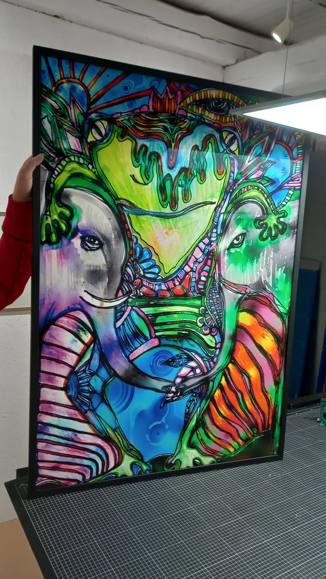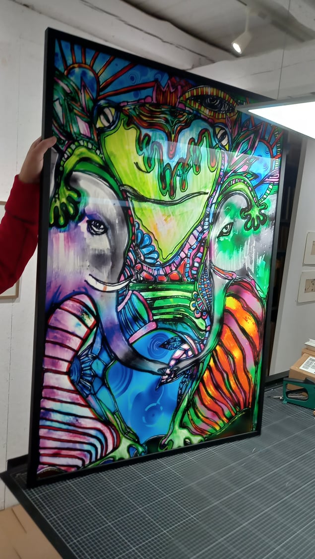 Join us down the rabbithole on a twelve peice journey of awakening, struggle and tales from our collective unconscious! - Museum/Archive standard with a minimum of 100 years lifespan. Acid-free paper, custom-build frame, non-reflective glass & dustproof seal all according to ISO-9706 standards. - Artwork delivered with certificate of authenticity, legal document of ownership, personal letter, signed by the artists themselves. - Personal delivery by the artists themselves. (look at additional shipping information for info) - Extremely limited edition (3-5 depending on size) 3 sizes: 60x85cm / 85x120cm / 100x140cm 2700€ / 3000€ / 3300€ per size respectively. Artwork #3 in the exclusive limited edition series "Det som är svårast att se" (The hardest thing to percive) Psychedelic Art by Josephine Lundqvist & Johan Wretman. The final craftmanship with frames, glass and printing done by Niklas Storm/Fotoverket. An analog-digital-analog workproccess from pen and paper and mixed techniques on paper, via the digital universe and back out again on the other side, with handmade custom build frames, non-reflective glass on acid-free paper and with worldclass printing. Welcome! / Johan & Josephine - HeNåAnne