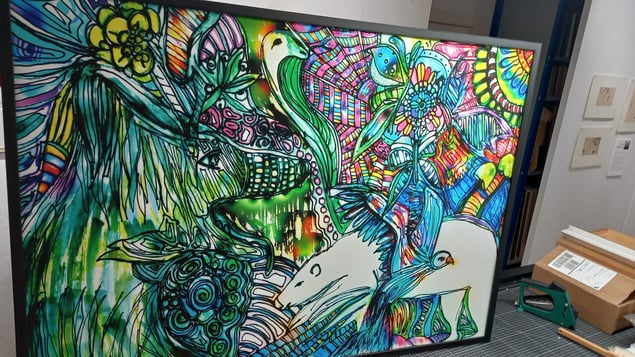 Join us down the rabbithole on a twelve peice journey of awakening, struggle and tales from our collective unconscious! - Museum/Archive standard with a minimum of 100 years lifespan. Acid-free paper, custom-build frame, non-reflective glass & dustproof seal all according to ISO-9706 standards. - Artwork delivered with certificate of authenticity, legal document of ownership, personal letter, signed by the artists themselves. - Personal delivery by the artists themselves. (look at additional shipping information for info) - Extremely limited edition (3-5 depending on size) 3 sizes: 60x85cm / 85x120cm / 100x140cm 2700€ / 3000€ / 3300€ per size respectively. Artwork #9 in the exclusive limited edition series "Det som är svårast att se" (The hardest thing to percive) Psychedelic Art by Josephine Lundqvist & Johan Wretman. The final craftmanship with frames, glass and printing done by Niklas Storm/Fotoverket. An analog-digital-analog workproccess from pen and paper and mixed techniques on paper, via the digital universe and back out again on the other side, with handmade custom build frames, non-reflective glass on acid-free paper and with worldclass printing. Welcome! / Johan & Josephine - HeNåAnne