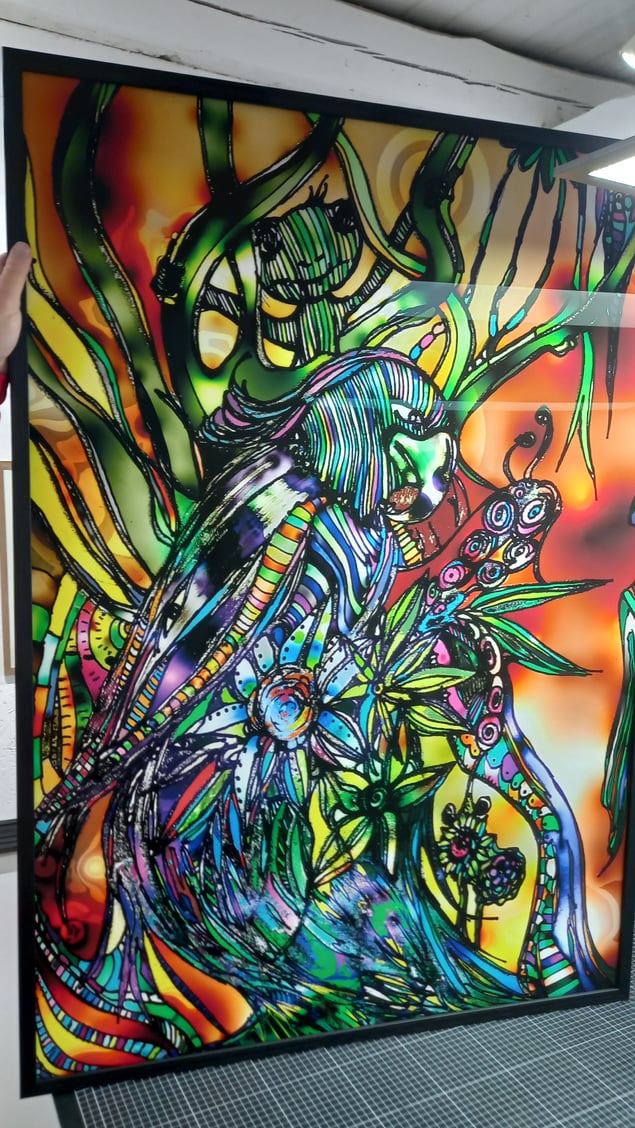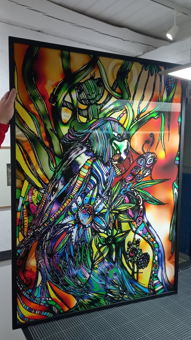 Join us down the rabbithole on a twelve peice journey of awakening, struggle and tales from our collective unconscious! - Museum/Archive standard with a minimum of 100 years lifespan. Acid-free paper, custom-build frame, non-reflective glass & dustproof seal all according to ISO-9706 standards. - Artwork delivered with certificate of authenticity, legal document of ownership, personal letter, signed by the artists themselves. - Personal delivery by the artists themselves. (look at additional shipping information for info) - Extremely limited edition (3-5 depending on size) 3 sizes: 60x85cm / 85x120cm / 100x140cm 2700€ / 3000€ / 3300€ per size respectively. Artwork #6 in the exclusive limited edition series "Det som är svårast att se" (The hardest thing to percive) Psychedelic Art by Josephine Lundqvist & Johan Wretman. The final craftmanship with frames, glass and printing done by Niklas Storm/Fotoverket. An analog-digital-analog workproccess from pen and paper and mixed techniques on paper, via the digital universe and back out again on the other side, with handmade custom build frames, non-reflective glass on acid-free paper and with worldclass printing. Welcome! / Johan & Josephine - HeNåAnne