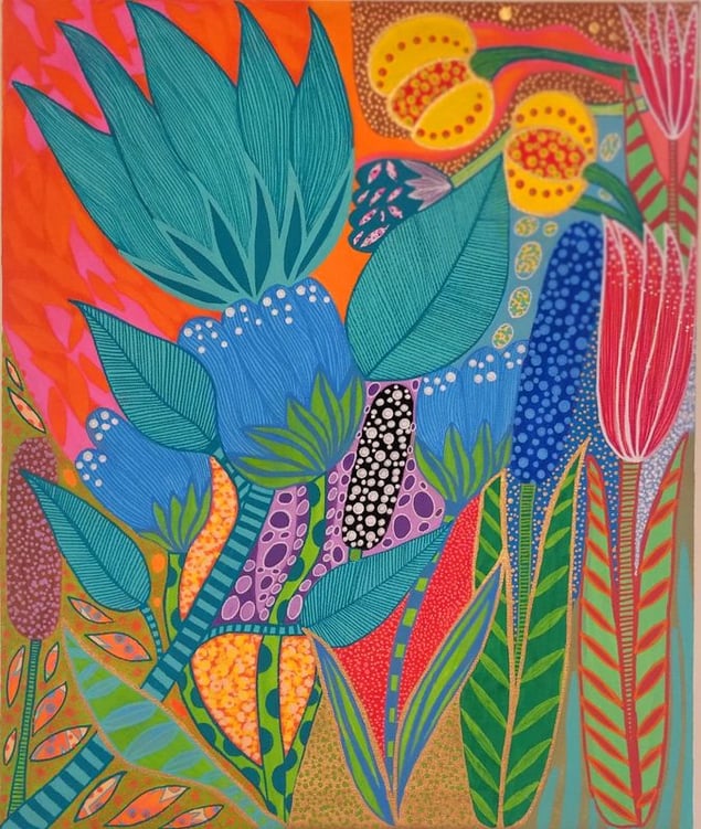 My fantasy flowers are a series of several paintings with colorful fantasy flowers and different patterns.