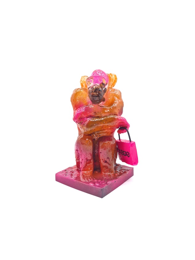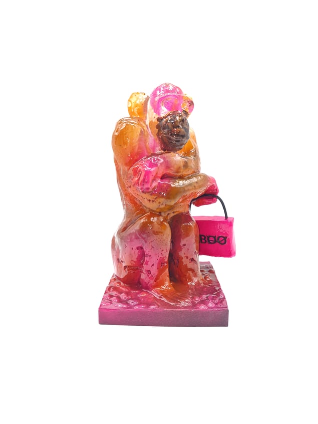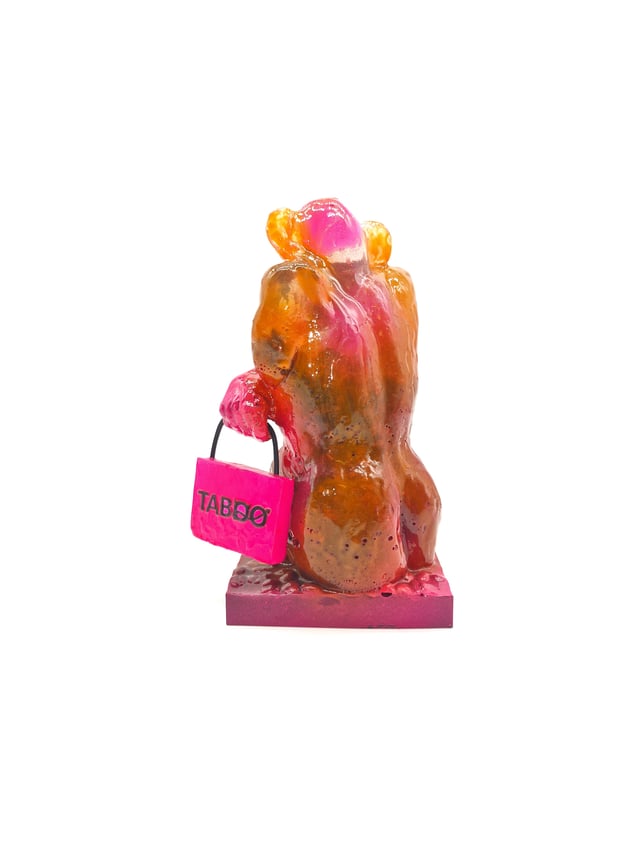 Introducing "Taboo," a captivating sculpture that invites you into a world of playful exploration and artistic freedom. Inspired by the iconic design of the beloved best-selling dildo, Mr. Rabbit, this piece takes color cues from its vibrant hue, featuring a visually stunning blend of soft pink and light orange, accented by translucent elements that create a striking contrast. Crafted from high-quality resin and embedded with coffee beans, "Taboo" marries unexpected materials to evoke sensory intrigue. The artisanal coffee beans, particularly visible on the chin of the piece, provide an organic texture that enhances its contemporary allure. This limited edition sculpture is part of the exclusive "Comforting" series, designed to challenge perceptions and spark conversations. Each piece comes with a signed certificate of authenticity discreetly placed under its base, assuring you of its unique status. Embrace the unconventional and add "Taboo" to your collection—where artistry meets whimsy in a celebration of design and sensuality.
