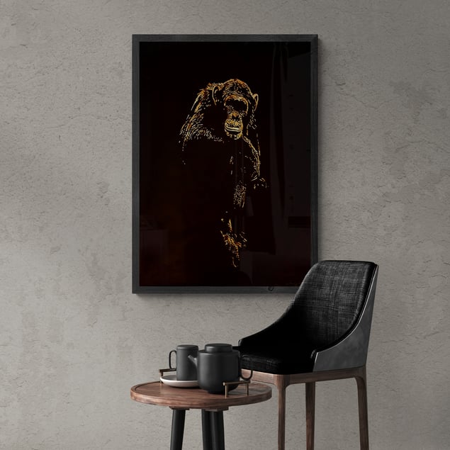 "Contemplating" invites the viewer into a moment of introspection, capturing the essential truth that productivity is not the only pathway to growth. This captivating artwork features a poised chimpanzee, thoughtfully seated with crossed legs and arms, embodying the beauty of stillness and reflection. The artist masterfully employs dark roasted coffee to create the figure, infusing each brushstroke with warmth and depth. The backdrop, rendered in rich black ink, provides a striking contrast that accentuates the subject’s contemplative demeanor. Crafted on high-quality, acid-free paper, this piece not only stands as a stunning visual statement but also promises longevity, ensuring that the message of mindfulness and contemplation endures through time. Each artwork is signed by the artist, making it a unique addition to any collection. Embrace the power of pause and let "Contemplating" inspire your journey of self-reflection.