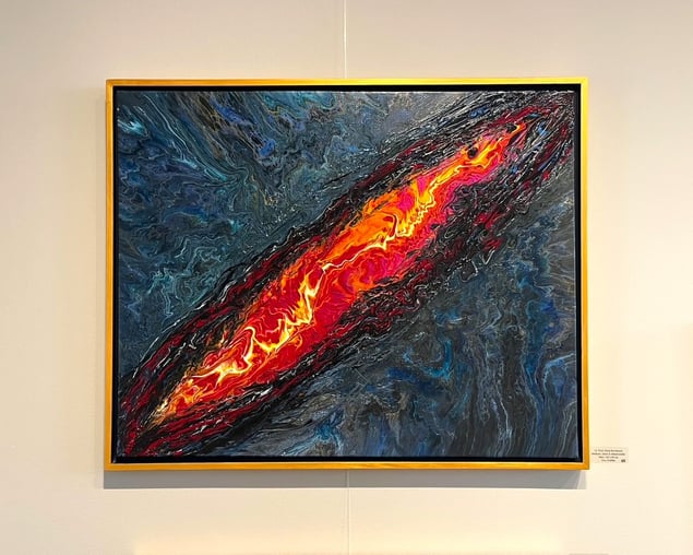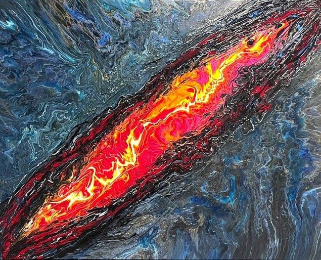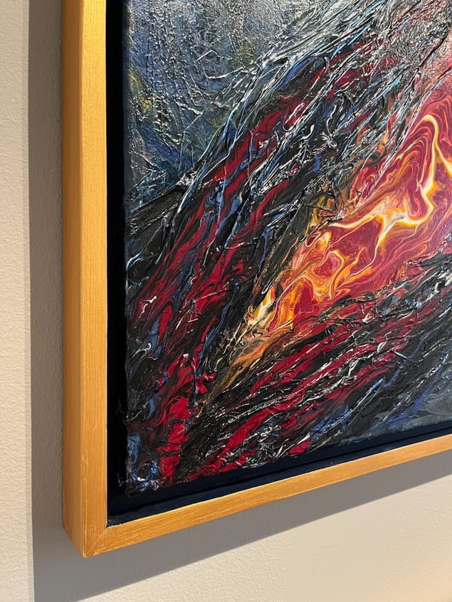 Acrylic Fluid Art/mixed media on stretched canvas with painted shadow frame