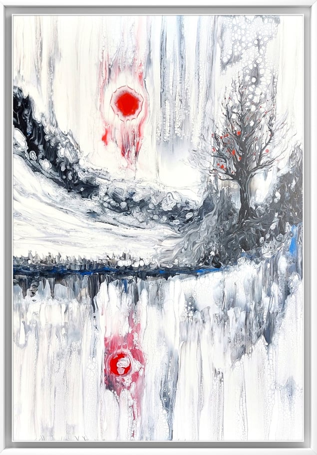Acrylic Fluid Art on stretched canvas incl. painted wooden frame
