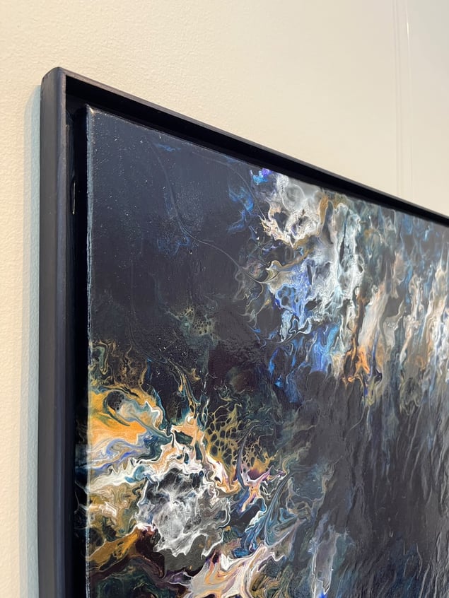 Fluid Art - Dutch pour on stretched canvas framed with wooden frame (painted in prussian blue)