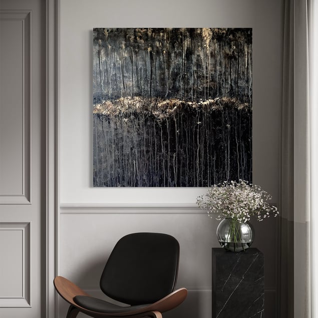 ART CONCEPT / TERROIR & WINE It’s all about origin and sense of place in the world of handcrafted, quality wine. As a sommelier and wine journalist, the concept of terroir is a constant source of inspiration, also for my art. Each piece is linked to a specific region, soil type, grape or wine style and comes with a wine story of its own. FOREST FLOOR IN CÔTE D'OR In this case Burgundy, a French region producing some of the world's finest wines, is the inspirational source. Imagine an autumn day in the forest, walking on wet moss and fallen leaves, hunting for chantarelles to go with a lovely red Burgundy wine. Forest floor is an expression often used to describe deep, special notes in a quality wine of some age. Côte d'Or, a name referring to the golden slopes with excellent sites where vines thrive, has inspired to the golden details. Here mixed with deep soils, earth and minerality, resulting in glimmering gold in the glass. Acrylic and gold leafs on canvas.