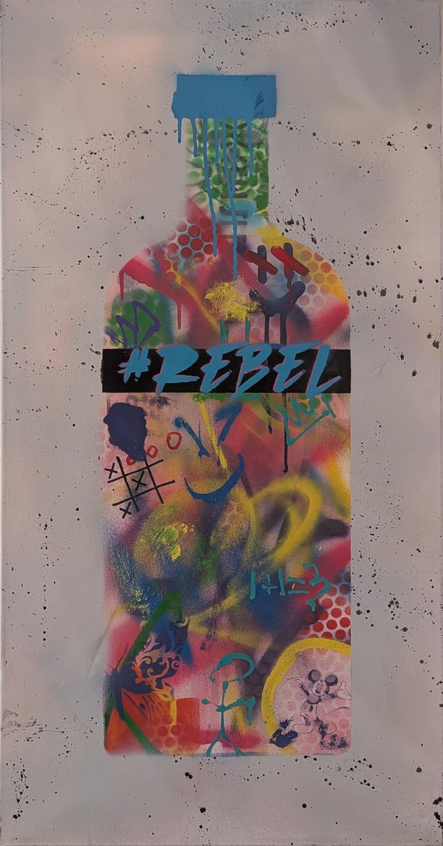 "ABSOLUT Rebel" is a middle finger to conformity, camouflaged as a bottle you wish you could smash. The classic bottle silhouette gets hijacked by a riot of graffiti, smears, splatters, and neon splashes—a visual manifesto for anyone allergic to clean lines and safe art. That "#REBEL" tag isn’t subtle, and thank god for that. This piece isn't about drinking; it's about breaking shit, rewriting rules, and refusing to fit any mold. If you're tired of vanilla pop art, this is your antidote. It's chaotic, clever, and full of energy—one hundred percent unapologetic attitude.