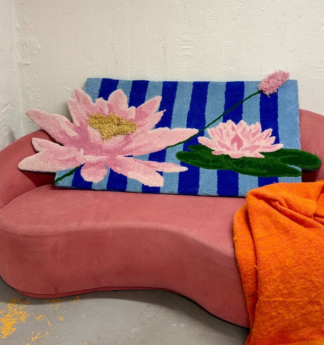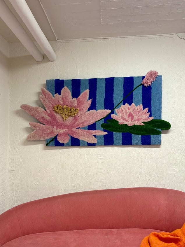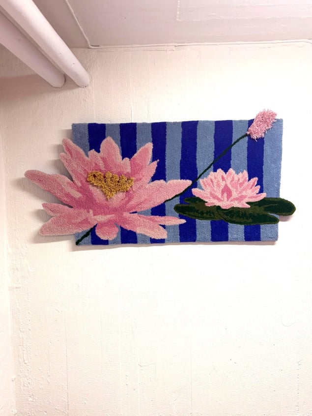 Immerse yourself in the bold elegance of "Lilly Takes Space," a captivating artwork that invites you to explore the themes of growth and unabashed presence. Featuring a stunning array of water lilies, this piece bursts forth against a dynamic blue striped background, creating a striking visual interplay that captures the eye and imagination. The unique texture of the soft fibers adds a tactile dimension to the petals, which appear to reach beyond their boundaries, embodying an unstoppable spirit and a refusal to be contained. This artwork is not just a visual feast; it is a celebration of resilience and beauty in their most unapologetic forms. Embodying the essence of vibrancy, these lilies stand as a powerful reminder of nature’s ability to flourish even in the most challenging environments. They boldly assert their place, urging us to embrace our own space in the world—visible, confident, and alive. "Lilly Takes Space" is an extraordinary piece that not only enhances an art collection but also inspires a profound reflection on the importance of claiming one's space and presence. Experience the beauty of this remarkable work and allow it to transform your surroundings.