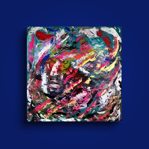 Cake Dare to taste. Dare to feel. “Cake” was born from a moment of chance and curiosity—painted on a canvas I randomly found near my house. Like finding a forgotten treat on the edge of the world, it invited me to play, to smear, to experiment. Explosive in color and unapologetically expressive, parts of the painting were made with fingers—like testing the frosting before anyone's looking. It’s messy. It’s joyful. It’s full of flavor and feeling. More than just a painting, “Cake” is a dare: to indulge in sensation, to make a mess, to feel something real. Cake Насмілься скуштувати. Насмілься відчути. «Cake» народилася зі спонтанного моменту — намальована на полотні, яке я випадково знайшов біля свого дому. Наче забутий шматочок торта на краю світу, він запросив мене погратися, розмазати, поекспериментувати. Вибух кольорів, емоцій і відбитків пальців — деякі мазки зроблені саме ними, як тоді, коли непомітно пробуєш крем пальцем. Це безладно. Це радісно. Це насичено смаком і почуттями. Це не просто картина — це виклик: дозволити собі насолоду, зануритись у відчуття, забруднитися фарбами життя.