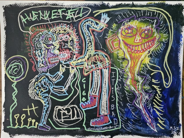 My name is Mathias Szabo and I'm 35 years old and live in Borås Sweden. I have painted for about two and a half years now. I like to paint because I get feelings out on canvas or paper. I mix alot of techniques like watercolor together with posca pens, acrylics with posca and stuff. I suffer from severe mental illness but that doesn't stop me from creating, actually I think it helps me come up with weird idéas. When it comes to art I'm very productive. I like trying new things. I want to keep growing as an artist for my own sake. Thank you.