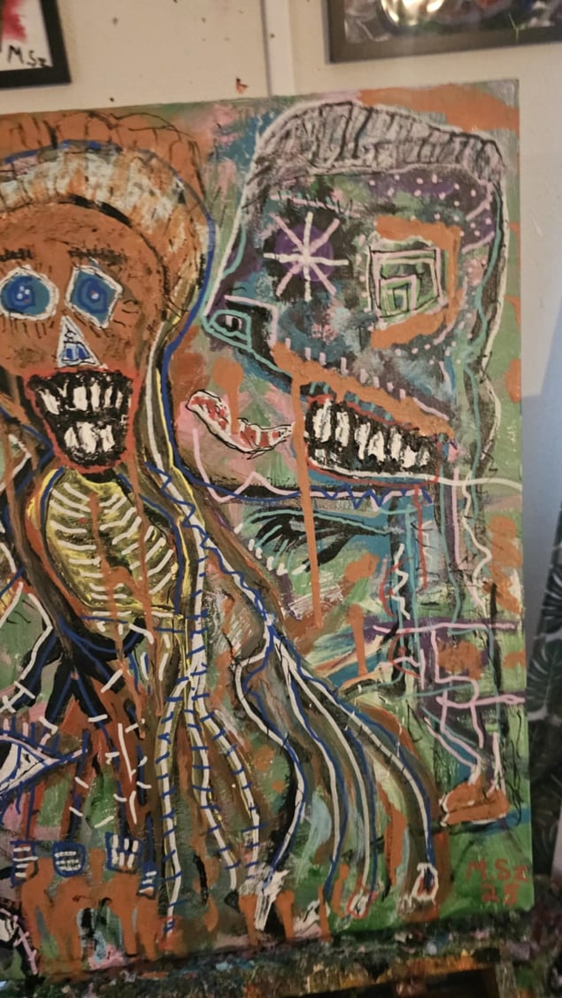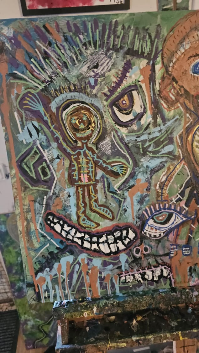 My name is Mathias Szabo and I'm 35 years old and live in Borås Sweden. I have painted for about two and a half years now. I like to paint because I get feelings out on canvas or paper. I mix alot of techniques like watercolor together with posca pens, acrylics with posca and stuff. I suffer from severe mental illness but that doesn't stop me from creating, actually I think it helps me come up with weird idéas. When it comes to art I'm very productive. I like trying new things. I want to keep growing as an artist for my own sake. Thank you.