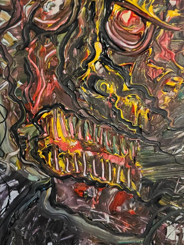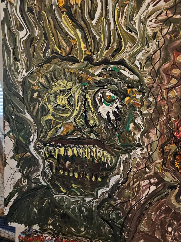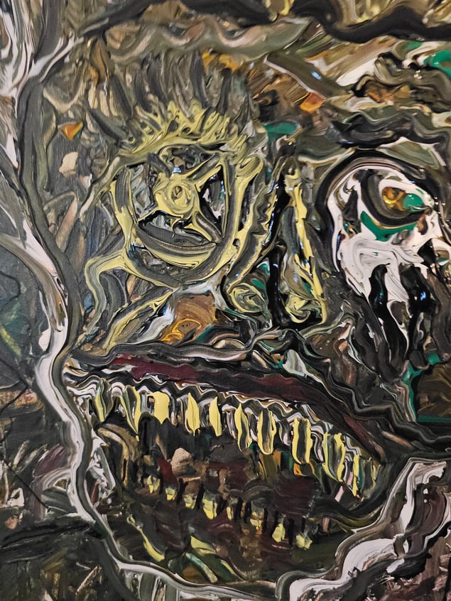 I made this with acrylics and a very little bit posca pens on a panel canvas. I actually didn't remember doing it when I woke up the next morning. I had taken my medication and I had gone up and painted while sedated and it took me a while to get my memory back when I woke up. It felt weird.