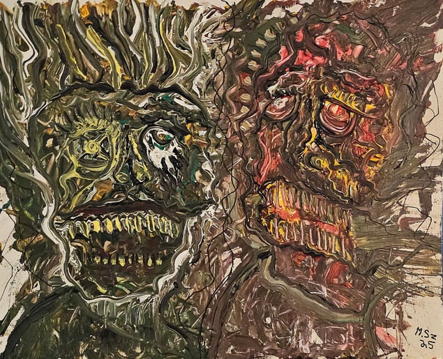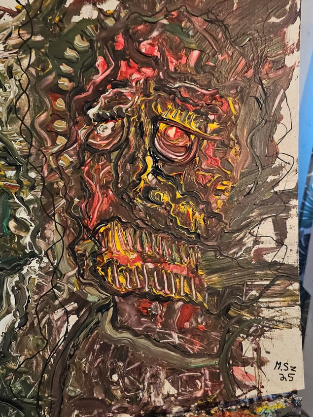 My name is Mathias Szabo and I'm 35 years old and live in Borås Sweden. I have painted for about two and a half years now. I like to paint because I get feelings out on canvas or paper. I mix alot of techniques like watercolor together with posca pens, acrylics with posca and stuff. I suffer from severe mental illness but that doesn't stop me from creating, actually I think it helps me come up with weird idéas. When it comes to art I'm very productive. I like trying new things. I want to keep growing as an artist for my own sake. Thank you.
