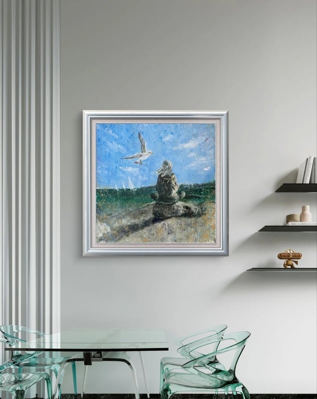 A quiet summer moment by the sea. This painting was born from a deep longing for stillness, warmth, and space to simply exist. The woman sits calmly by the water, accompanied by a bird and the soft light of the Nordic coast. A gentle, reflective piece about presence, solitude, and the healing power of nature. Original oil painting, created with care and attention to detail. Signed by the artist.