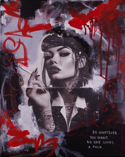 Sally is a tribute to female strength, self-respect, and rebellious spirit. She was born out of a personal reaction to injustice – a visual act of resistance, a way to reclaim power. Her cold gaze, tattoos, and cigarette all signal defiance, while the tailored suit reveals she’s also a leader – a boss lady who refuses to compromise who she is. Contrasts, tattoo aesthetics, and the quote: “Do whatever you want. No one gives a fuck”, become a call to stand in one’s power unapologetically. Sally challenges our preconceptions of what power should look like. She reminds us that strength can take many forms – and that sometimes, the bravest thing is to be entirely yourself. Themes: Rebellion. Breaking norms. Female empowerment. Self-respect. Leadership.