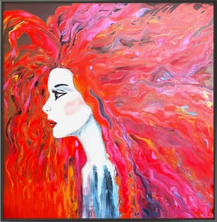 Acrylic on stretched canvas. Original unique artwork signed Nathalie Palmaer 100x120 cm. A white frame is included.