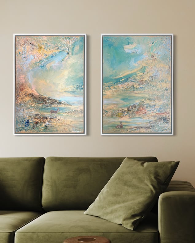 My name is Rakel Barsom and I have always loved painting. As a child, I spent hours in my room drawing and coloring, and art class was always the best part of school for me. I'm not usually someone who can do the same thing for a long time, but when I paint, everything around me disappears. I can paint for hours without even noticing the time passing. I love painting intuitively and never have a finished plan when I start. It feels like a kind of freedom to let the brush and colors lead the way. Painting is my meditation, a way to express what can't be said with words, and a chance to fully focus on the act of creating.