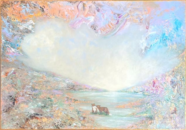 Wild Hearts | 2025 Immerse yourself in the enchanting world of Wild Hearts, a stunning painting that pays homage to the vibrant spontaneity of nature and the serendipitous moments that beautifully enrich our lives. This evocative artwork invites you to experience a deep sense of connection and tranquility, whispering a calming narrative that resonates with the soul. At the heart of this piece, two affectionate foxes come alive against a dreamlike landscape, embodying the tenderness of love and companionship in a realm filled with ethereal wonder. Every brushstroke captures the essence of their bond, encouraging viewers to reflect on their own connections and the joy that nature brings. Let Wild Hearts transform your space while inspiring contemplation and a sense of serenity, as it reminds us that unexpected encounters with nature can lead to profound emotional experiences. This artwork is not just a visual delight; it is a heartfelt invitation to embrace the beauty of connection in our ever-evolving world.