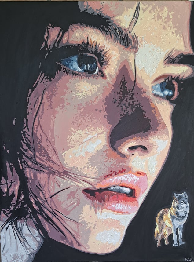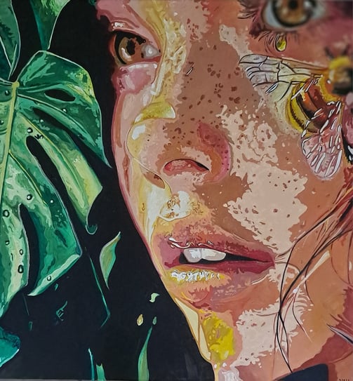 Based in the southern region of Halland, the artist balances a rich family life alongside her existing professional commitments, dedicating her free time to the craft of painting. She primarily focuses on creating women’s portraits, where she challenges herself to capture the nuanced expressions, radiance, and shadow play inherent in feminine beauty. Intriguingly, she often incorporates delicate details from nature, such as insects, plants, or animals, to cultivate a sense of mysterious dynamism within her work. Her medium of choice, acrylic, delights her with its versatility, allowing her to experiment with both thick and thin applications of paint. The artist's pieces are characterized by a pixelated, stippled texture that transforms dramatically depending on the viewer's distance. This unique approach invites contemplation, as the interplay of light and shadow further alters the perception of each painting, revealing new dimensions and inviting deeper exploration.