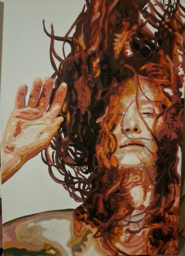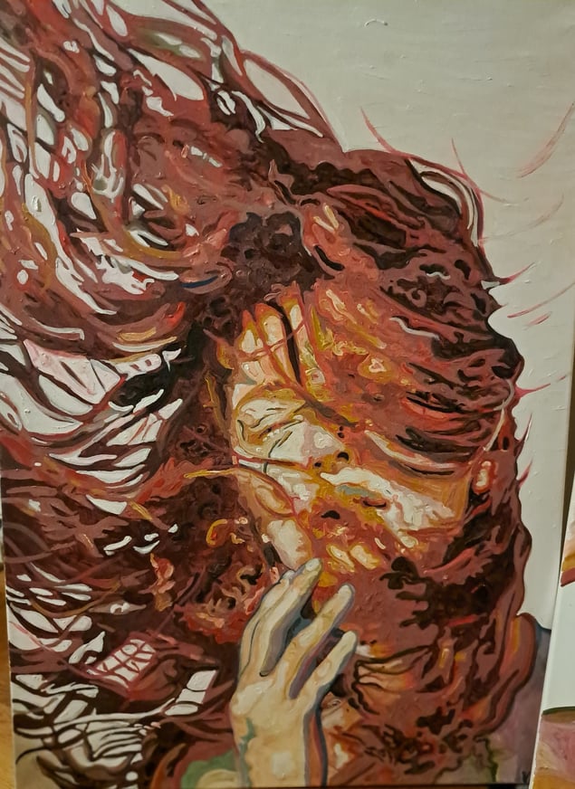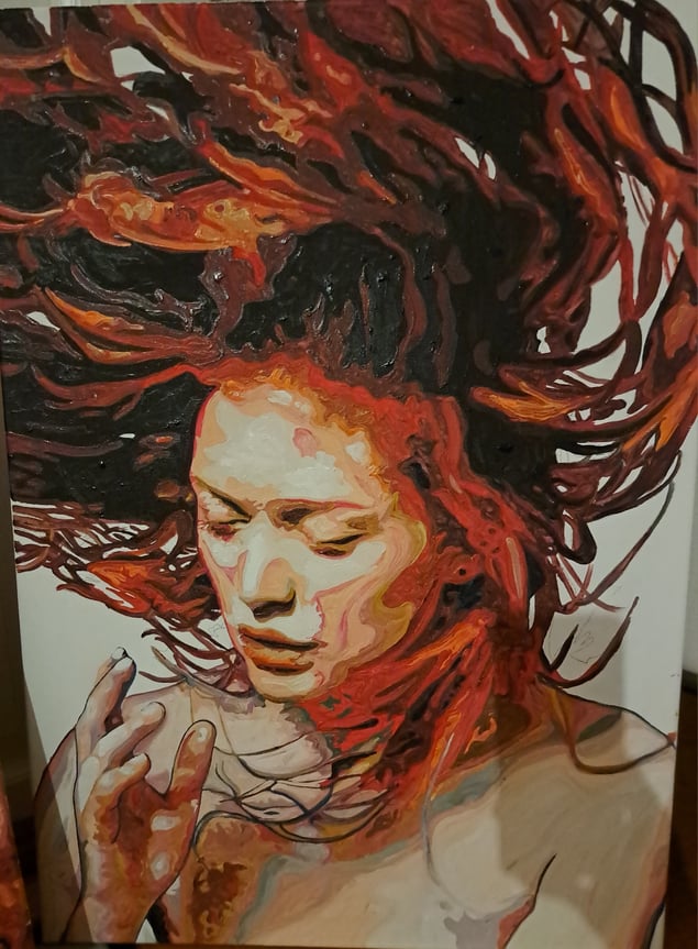 Based in the southern region of Halland, the artist balances a rich family life alongside her existing professional commitments, dedicating her free time to the craft of painting. She primarily focuses on creating women’s portraits, where she challenges herself to capture the nuanced expressions, radiance, and shadow play inherent in feminine beauty. Intriguingly, she often incorporates delicate details from nature, such as insects, plants, or animals, to cultivate a sense of mysterious dynamism within her work. Her medium of choice, acrylic, delights her with its versatility, allowing her to experiment with both thick and thin applications of paint. The artist's pieces are characterized by a pixelated, stippled texture that transforms dramatically depending on the viewer's distance. This unique approach invites contemplation, as the interplay of light and shadow further alters the perception of each painting, revealing new dimensions and inviting deeper exploration.