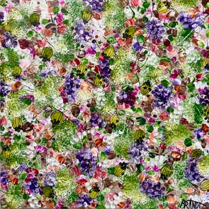 She prefers to paint outdoors in the garden because of the light and all the impressions one gets. Her motifs consist mostly of sky, nature and flowers. Usually in an abstract form with lots of colors. For the most part, Anna Brandt paints using her fingers, and almost never a brush. “If one uses ones fingers, the color flows better due to the heat from the hands and you do not have to mix the color with additives.” Acrylic paint is Anna’s favorite medium to paint with as it is easy to work with and it does not fade so the paint retains its strength.