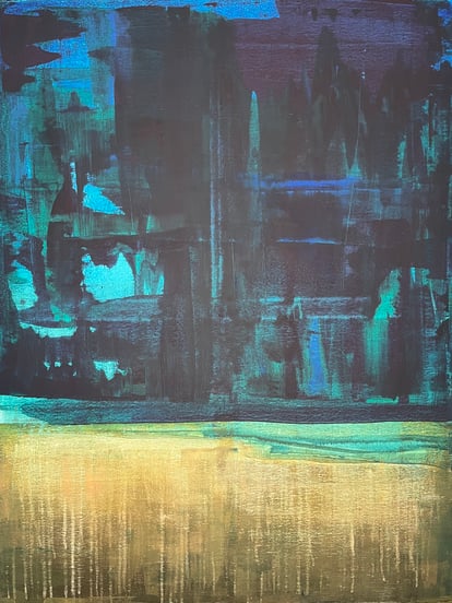 I’m drawn to abstract art and often begin without a plan—letting colors, texture, and emotion lead the way. I tend to gravitate toward darker tones, often incorporating coffee or sand to add depth and texture. I like when things feel a bit “gritty”—it shouldn’t be too perfect. For me, creating art is a way to find presence and stillness. I don’t strive for perfection, quite the opposite. I don’t want to overthink, I work fast and simply follow my intuition and emotions.