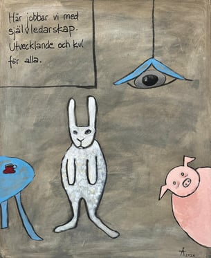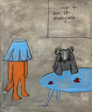 My art is often colorful and free. Mostly I get inner images that I then try to paint. It is often about animals in different forms. Some parts are more descriptive and a lot is fantasy and just playing around with form and painting.