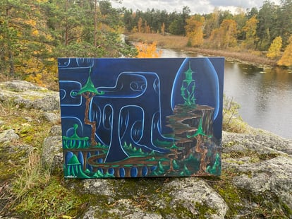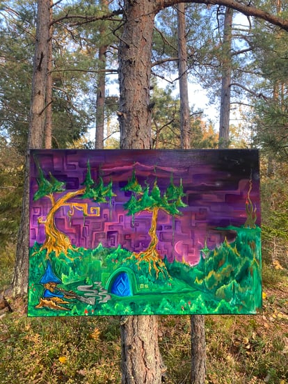 Each of my works follows its own unique process. Sometimes I start with a sketch, while other times the piece unfolds entirely spontaneously. Certain acrylic paintings have taken me several months to complete, as I prefer to let them evolve slowly rather than make any rushed decisions if i've painted on it for a while already.