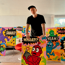Ringborg Mankert flirts with both classic comic books and pop culture – drawing on what is visually exaggerated and emotionally charged. With images full of colour, energy and rhythm, he creates works that feel humorous, nostalgic – and decidedly contemporary.