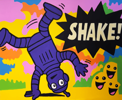Visually, my work stands on the shoulders of several strong influences. Keith Haring’s lines and his ability to make entire spaces vibrate with simple figures have been important to me. Andy Warhol’s way of turning repetition and everyday icons into something both cool and strange is another anchor. The bold colours and exuberant, almost unruly forms of Niki de Saint Phalle are another key reference, especially her fearless approach to joy, bodies and excess. From graffiti I have absorbed a sense of rhythm, movement and the urge to claim space with colour.