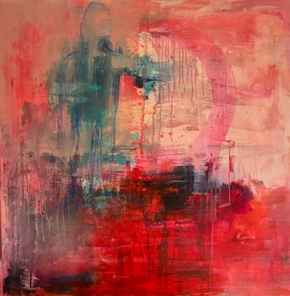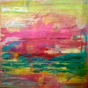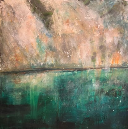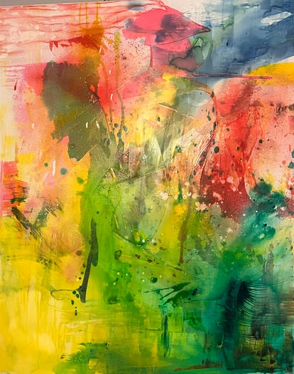 I work from an idea I have in my head but I let the painting be created along the way. Sometimes I use only acrylic paint, other times I add spray and ink to get the feeling I'm after.