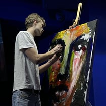 I work with thick strokes of oilpaint on stretched canvas with a palette knife. This creates a violent, raw and spontaneous expression which allows me to create at a fast pace and to feel the heat of the moment. This can also be a captivating performance which is why I’ve done livepaintings.
