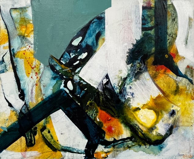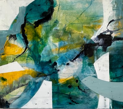Jag arbetar med textur och rörelse för att skapa djup och spänning i mina kompositioner. Lager på lager av färg byggs upp, där varma jordtoner möter svala blå och gröna nyanser, vilket symboliserar de många perspektiv och möjligheter som alltid finns närvarande. De tydliga formerna och de flödande linjerna i mina verk representerar vägar, flöden och de ständiga val vi ställs inför.