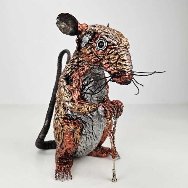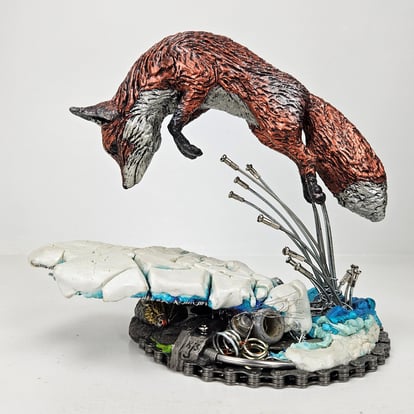 I create animal sculptures using discarded materials, clay and metal wire. Through constant experimentation I have developed a distinct style that fuses industry with nature, metal with clay, fantasy with reality.