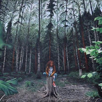 Lebo creates mainly with acrylic paints