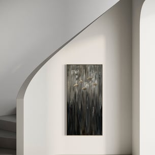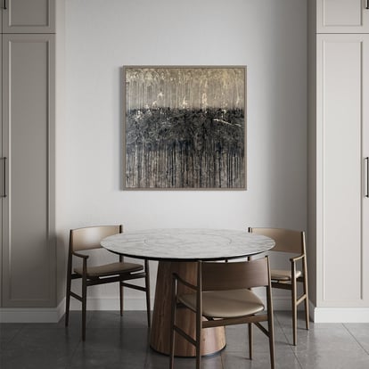 Acrylic, paper and mixed media on canvas or plywood. I mainly use acrylic, but sometimes add thin paper, rafia, hemp etc. The paintings are foremost inspirational interior design objects.
