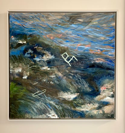 Simple, graphic symbols often reappear in my work, serving as visual keys or focal points within the composition. By balancing the intuitive with the deliberately placed, I create a rhythm and a narrative within each painting.